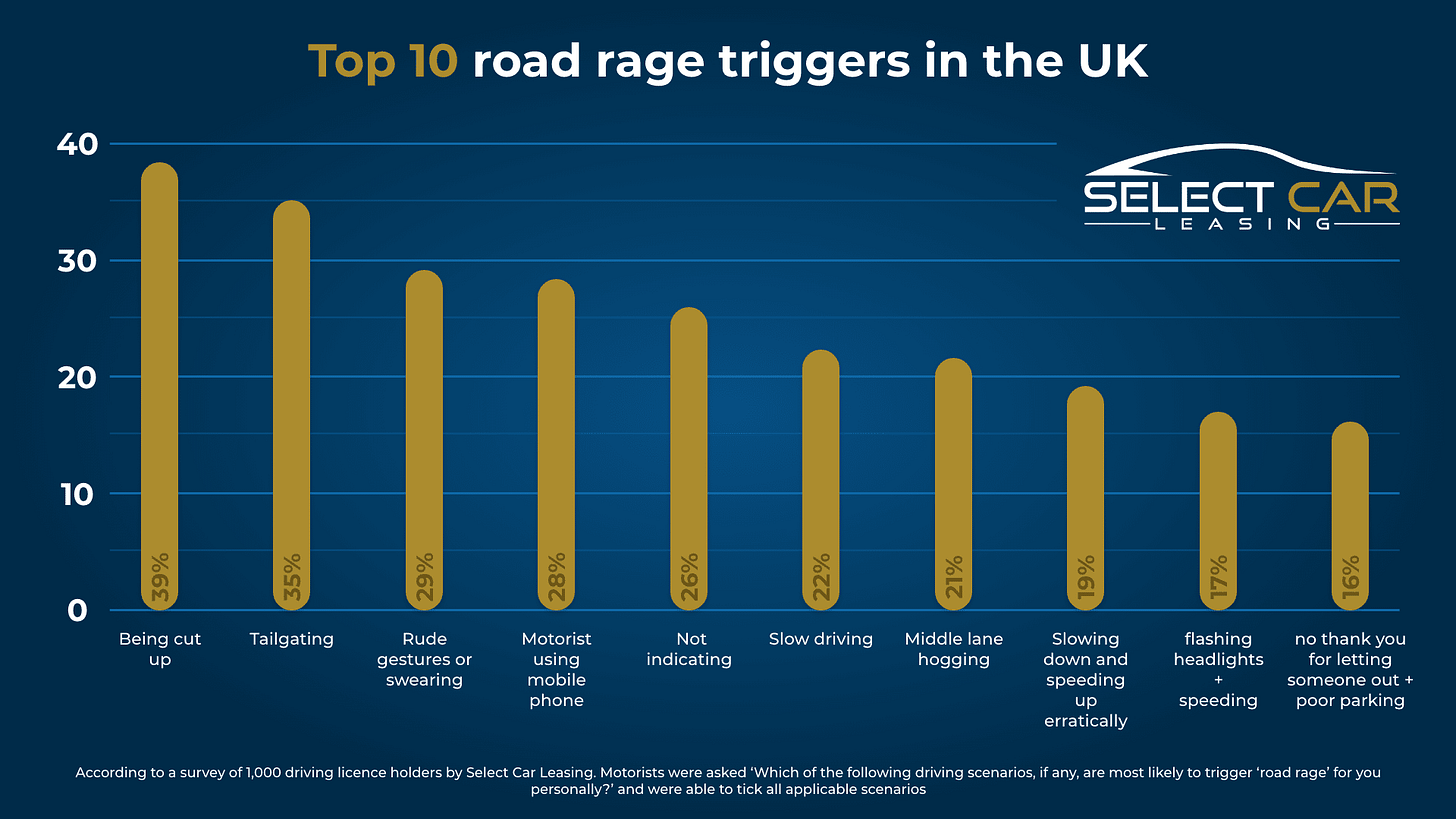 Road rage triggers - a cause of conflict. Source: Select Car Leasing